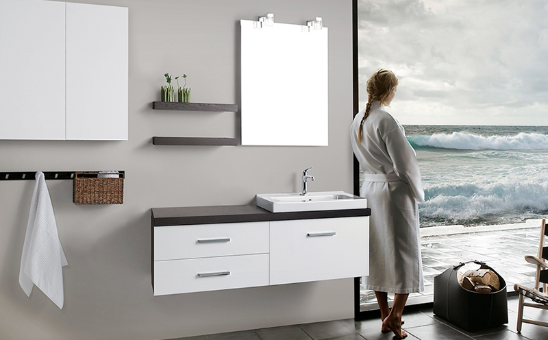 一般的衛浴品牌都有成品浴室柜。整體美觀,款式多樣,選擇方便。不愛操心的朋友,可以考慮直接買成品浴室柜。注意材質、色彩到形狀大小的挑選都要與衛浴間其它設施協調一致,以及與房間整體風格相符合。